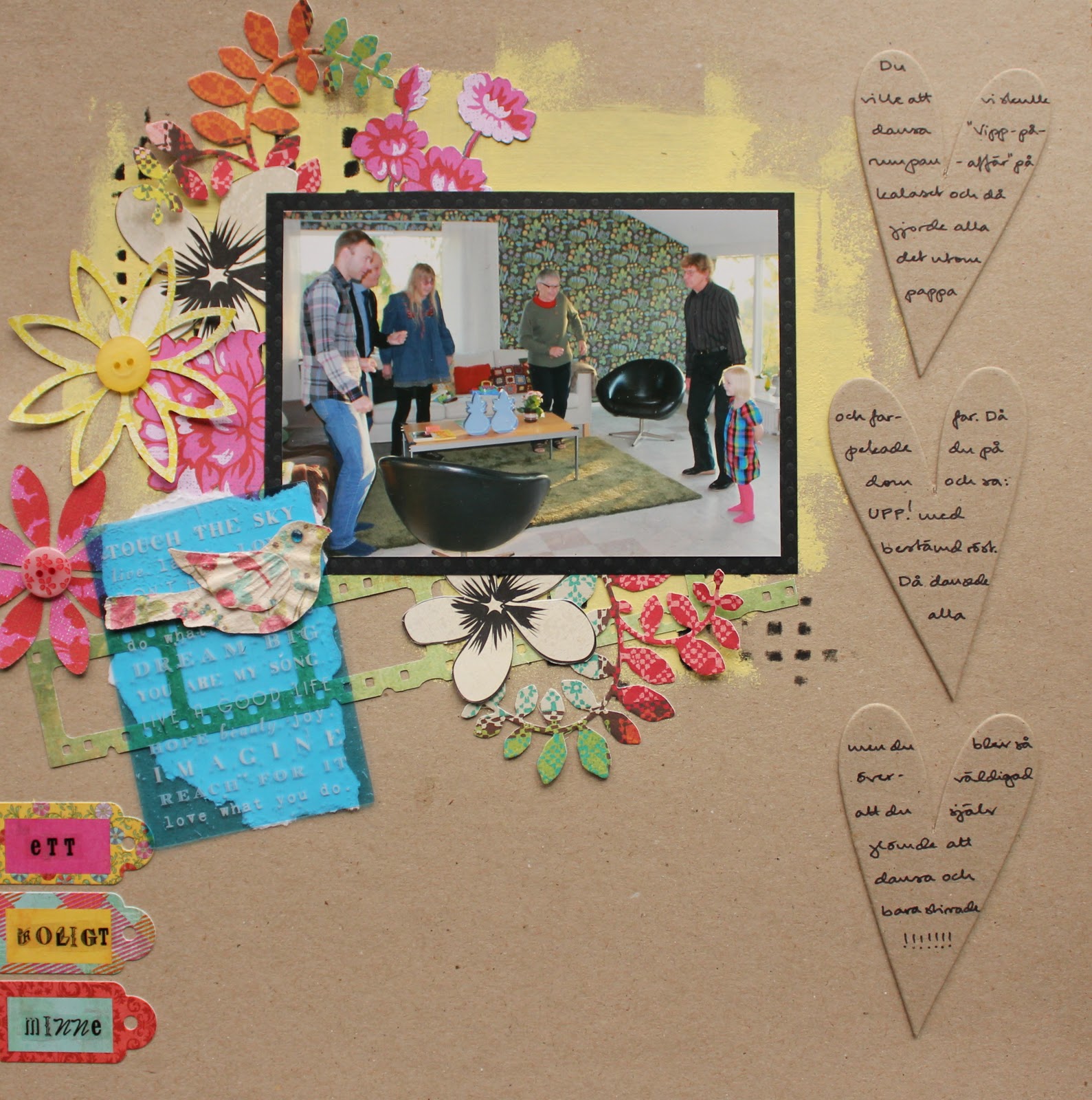 I chose a picture that captures a fun story that I want us all to remember. It needed a long journaling and I chose to write it on three chipboard hearts. As the chipboards had exactly the same shade as the craft paper I loved the effect of keeping them undecorated.